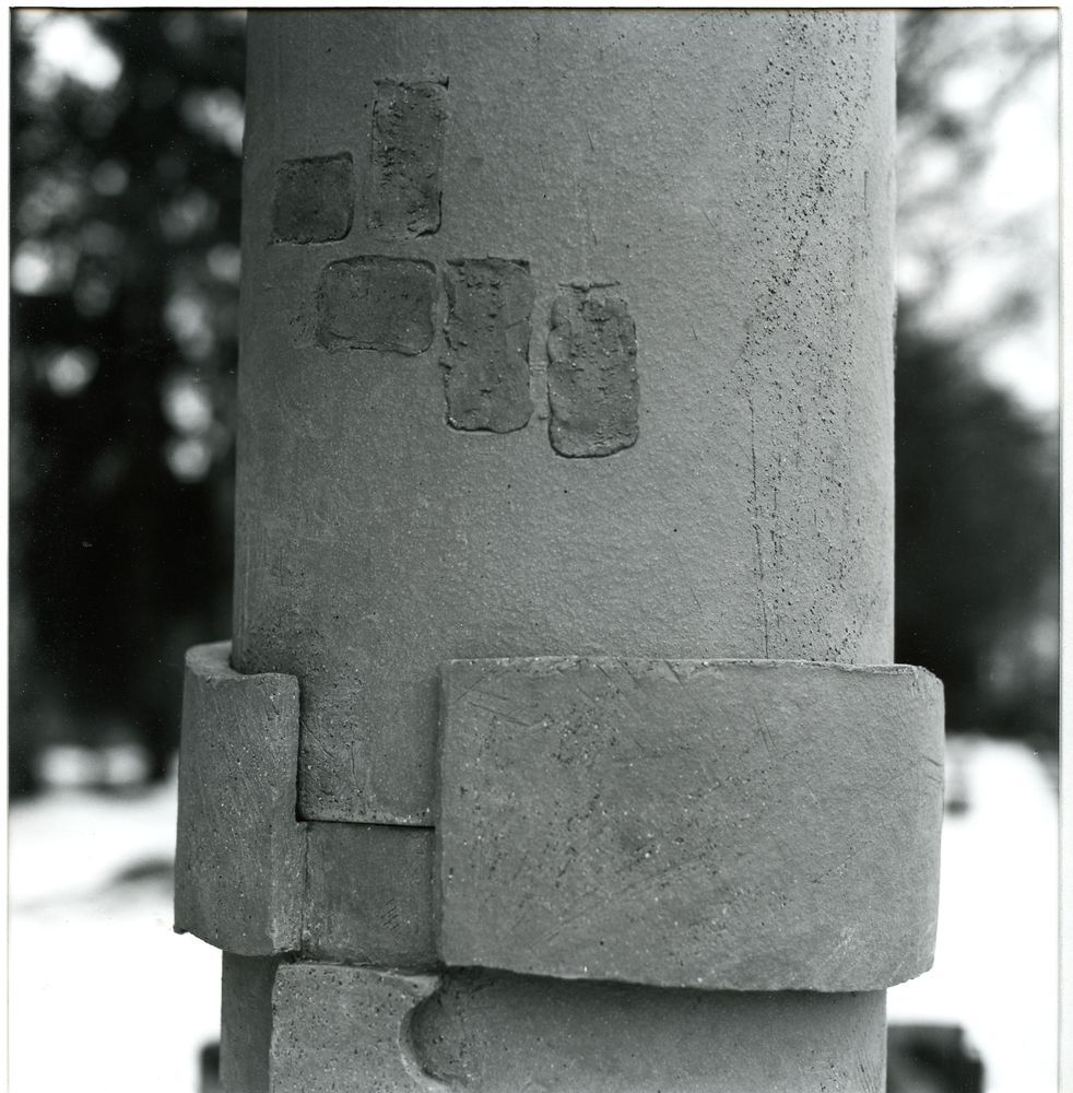 Materia e tecnica: Steinzeugton schamottiert 0,2 cm; Extruderrohre Ø 35 cm, wandstärke 2,5 cm. Oxyde inlaid Eisen, Chrom, Kobalt, Kupfer. Teilweise sulfataufsprühung (leich).