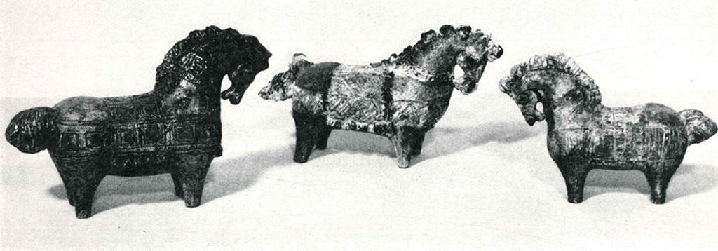 Artista : Wittke-Baudisch Gudrun Immagini Materiali e tecniche ceramica Edizione 23° Premio Faenza Premio Altri Premi Medaglia d' oro del Concorso Complesso di tre opere (figure a tutto tondo a foggia di cavalli).